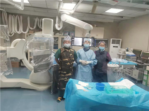 時(shí)間就是心肌,時(shí)間就是生命。為了用最短的時(shí)間、以最快的速度、贏得最佳的搶救機(jī)會(huì),多科室齊心協(xié)力,緊密配合,同步運(yùn)作:農(nóng)醫(yī)生初步判斷該患者應(yīng)為急性冠脈綜合征,立刻電話通知手術(shù)醫(yī)護(hù)趕回醫(yī)院,激活導(dǎo)管室;心血管內(nèi)科病房啟動(dòng)“心梗一套”,這是他們?yōu)榭s短心梗病人入導(dǎo)管室手術(shù)時(shí)間所制定的一套完備流程,CCU病房準(zhǔn)備完畢,術(shù)前用藥送達(dá)導(dǎo)管室;功能檢查科張慧副主任醫(yī)師攜帶設(shè)備,在導(dǎo)管室門(mén)口為病人完成了心臟彩超檢查,排除心肌病可能;術(shù)前的5??顾ㄋ幬镄杞婪铀偎幮?,貼心的農(nóng)醫(yī)生準(zhǔn)備了一杯溫水,幫患者潤(rùn)嗓子的同時(shí),也安撫了他緊張的情緒;在導(dǎo)管室隔壁接受胸部CT掃描后,最終確認(rèn)了急性冠脈綜合征的判斷;剛下夜班返家的心內(nèi)科徐先進(jìn)副主任醫(yī)師和休假中的導(dǎo)管室副護(hù)士長(zhǎng)程微也已爭(zhēng)分奪秒地趕到導(dǎo)管室,與農(nóng)醫(yī)生匯合,完成了所有術(shù)前準(zhǔn)備。