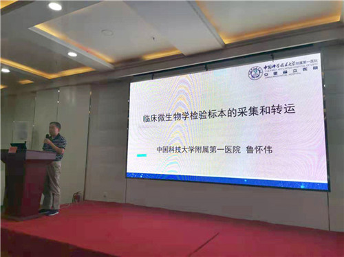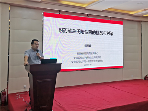 會議邀請了安徽醫(yī)科大學(xué)第一附屬醫(yī)院感染科主任郜玉峰教授和中國科學(xué)技術(shù)大學(xué)附屬第一醫(yī)院(安徽省立醫(yī)院)檢驗科魯懷偉教授,兩位專家分別就“耐藥革蘭氏陽性菌的挑戰(zhàn)與對策”以及“微生物標(biāo)本送檢規(guī)范”做了分享。