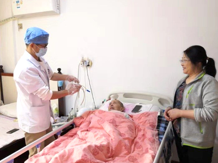 為提高病人出院后的生活質(zhì)量,減少并發(fā)癥,科主任劉長虹、護士長胡蝶帶領(lǐng)我們神經(jīng)外科團隊,每月對出院病人進(jìn)行電話回訪并開展上門延伸服務(wù)。一些植物生存狀態(tài)的病人不能自主飲食,大小便失禁,出院后仍攜帶胃管和尿管,但因為行動不便,往往不能在規(guī)定時間內(nèi)更換管道,從而引起各種感染及并發(fā)癥,延伸護理服務(wù)恰好解決了這一難題。我們的醫(yī)護人員每月定期上門服務(wù),為患者更換管道并進(jìn)行復(fù)診,根據(jù)患者現(xiàn)狀提供及時的專業(yè)醫(yī)療和護理指導(dǎo)。