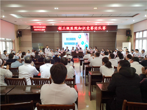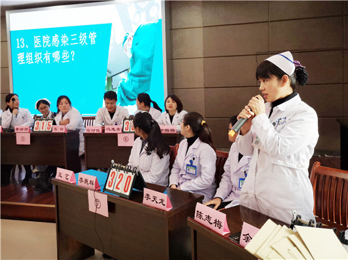 “三級(jí)醫(yī)院主要功能是什么?”“手衛(wèi)生的五大時(shí)刻是什么?”“門(mén)診突發(fā)事件應(yīng)如何應(yīng)對(duì)?”“麻醉藥品應(yīng)做到哪‘五專’?”昨天,我院在多功能廳舉辦創(chuàng)三級(jí)醫(yī)院知識(shí)競(jìng)賽團(tuán)隊(duì)賽。來(lái)自全院4個(gè)支部的9支代表隊(duì)共27名選手圍繞醫(yī)院服務(wù)、患者安全、醫(yī)療及護(hù)理質(zhì)量管理等三級(jí)醫(yī)院評(píng)審相關(guān)知識(shí)點(diǎn)展開(kāi)激烈角逐。