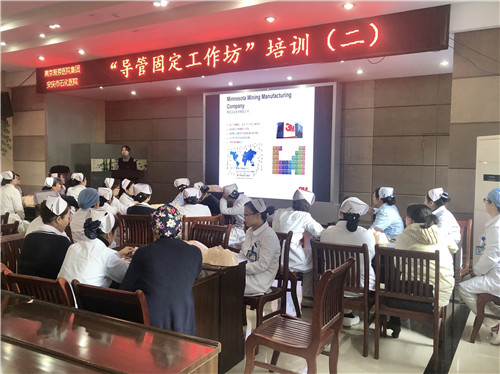 為進一步規(guī)范臨床各類導(dǎo)管的安全固定及標(biāo)準(zhǔn)化維護,降低非計劃拔管率,提高各類導(dǎo)管留置期間的安全性,提升護理人員對導(dǎo)管護理的安全意識,經(jīng)過前期的策劃、現(xiàn)況調(diào)研、制定活動方案,護理部于11月21日和12月7日開展了“導(dǎo)管固定工作坊”主題活動,分別對組長和組員進行培訓(xùn)?;顒佑勺o理部劉風(fēng)英主任主持,特邀3M公司專業(yè)技術(shù)人員現(xiàn)場授課指導(dǎo)。