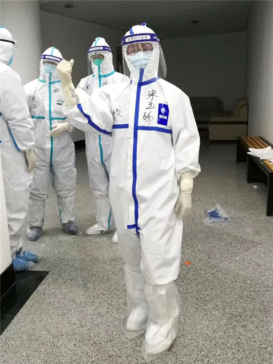 經(jīng)過(guò)1天短暫的休整,朱玉娣和隊(duì)友們參加了緊張的防護(hù)培訓(xùn),回到酒店,也一直在房間進(jìn)行穿戴防護(hù)裝備的練習(xí),直到深夜。為了更方便工作,朱玉娣毫不猶豫地剪去了多年養(yǎng)起的長(zhǎng)發(fā)。
