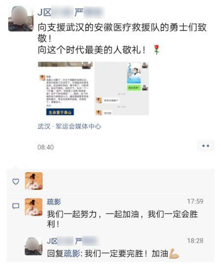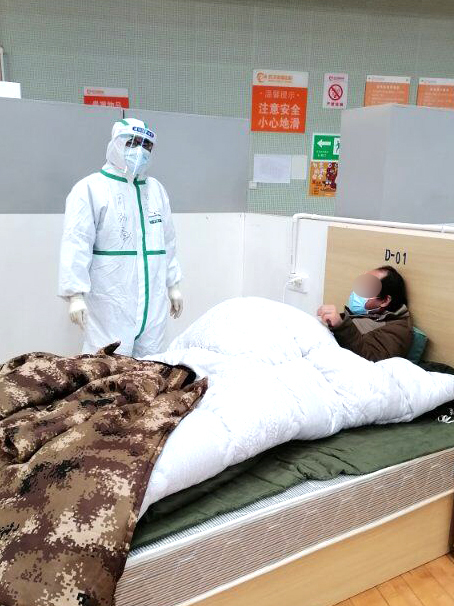 2月16日,疏平收到了他的求助信息。嚴先生患有糖尿病,他所攜帶的胰島素甘舒霖只能再維持三天。疏平立即聯(lián)系上級,多方協(xié)調,第二天就從武漢當?shù)蒯t(yī)院調來甘舒霖。拿到胰島素后,嚴先生特地向疏平表示了感謝。在隨后的一段日子里,疏平也十分關注他的治療和生活情況,“畢竟不得不和家人分開,在醫(yī)院隔離治療,時間一長難免會情緒低落,我們更要關心他們?!睘榱私o嚴先生和其他患者鼓勁加油,疏平常抽空和他們聊天,進艙查看病房物資時,也會特地去看望他們,甚至還多次把自己省下來的食品和生活用品委托隊友帶給他們。