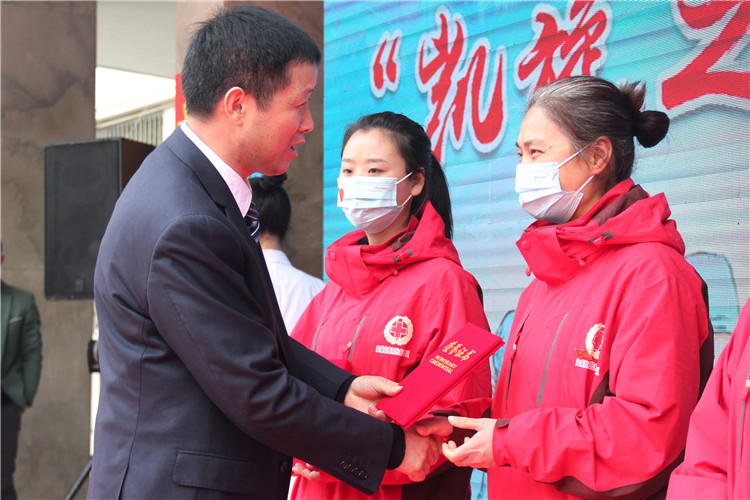 凡書記和徐主席為4名隊(duì)員頒發(fā)“防疫抗疫先進(jìn)工作者”證書。