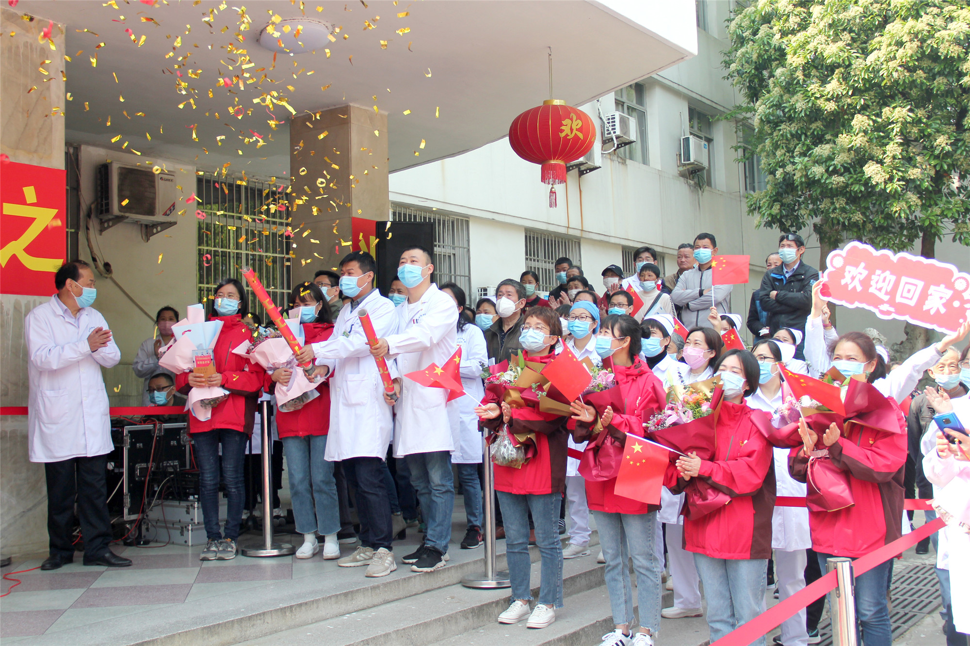 陳勝書記致祝賀凱旋詞。“逆行馳援戰(zhàn)疫情,無私奉獻(xiàn)有大愛。突如其來的疫情,檢驗(yàn)了我們石化醫(yī)院職工勇于承擔(dān)社會(huì)責(zé)任的擔(dān)當(dāng)和能力,彰顯了全員崇高的人民情懷和職業(yè)道德。讓我們記住7名支援武漢醫(yī)療隊(duì)員的姓名:彭鳳艷、張林妹、曹小玲、王燕、周勁勇、疏平、朱玉娣。謝謝我們的白衣勇士!向你們致敬!”