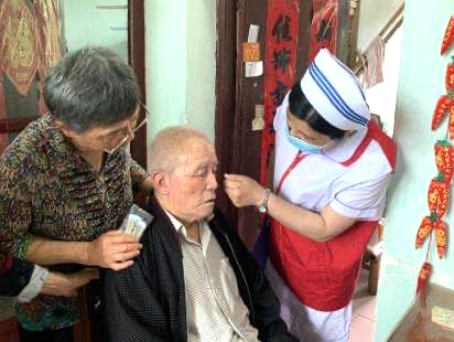 91歲的郝老是一位抗美援朝老兵,眼睛看不見,行動受限,家人得知我院護理上門服務,感動之余連連稱贊。