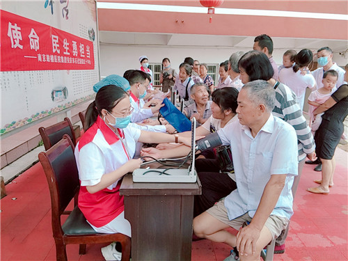 安置點(diǎn)現(xiàn)場(chǎng),由相關(guān)科室專家組成的志愿服務(wù)隊(duì)的義診臺(tái)前排滿了前來(lái)測(cè)量血壓、血糖的受災(zāi)群眾。