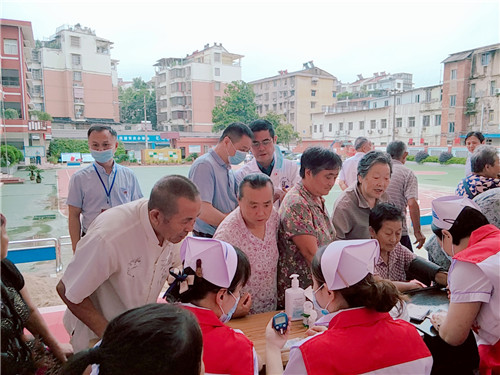 7月16日,南京鼓樓醫(yī)院集團(tuán)安慶市石化醫(yī)院紅十字會(huì)一行16人,來(lái)到太平寺小學(xué)災(zāi)民臨時(shí)安置點(diǎn),為那里的受災(zāi)群眾送去防暑防疫以及消殺藥品。該院紅十字志愿服務(wù)隊(duì)還在安置點(diǎn)內(nèi)開(kāi)展義診并向受災(zāi)群眾宣傳洪澇災(zāi)害期間醫(yī)療科普及災(zāi)后防疫知識(shí)。