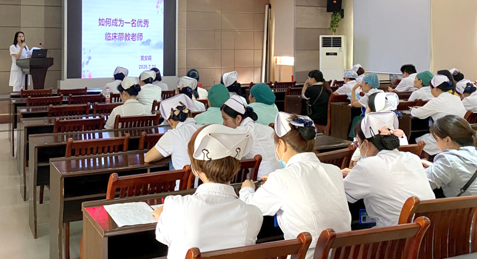 7月22日下午,護(hù)理部在多功能廳舉辦了一場(chǎng)以“如何成為一名優(yōu)秀帶教老師”為主題的講座。安慶醫(yī)藥高等??茖W(xué)?;A(chǔ)護(hù)理教研室主任黃安莉、各科室護(hù)士長(zhǎng)、全體帶教老師共四十人參會(huì),護(hù)理部江慶宏主持。