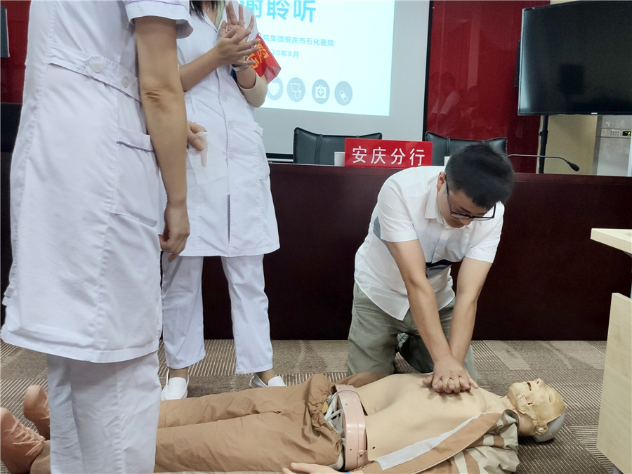 隨著生活水平的提高,人們?cè)絹?lái)越注重健康和養(yǎng)生,但對(duì)于急救知識(shí),大家的重視程度卻遠(yuǎn)遠(yuǎn)不夠。為了更廣泛地普及急救、自救知識(shí), 8月21日下午,我院天使愛心服務(wù)隊(duì)成員護(hù)理部副主任護(hù)師梁安萍、婦產(chǎn)科副護(hù)士長(zhǎng)石玉珍、泌尿外科副護(hù)士長(zhǎng)方誠(chéng)誠(chéng)、兒科主管護(hù)師桂春燕,一行四人走進(jìn)招商銀行,開展應(yīng)急救護(hù)培訓(xùn)演練。