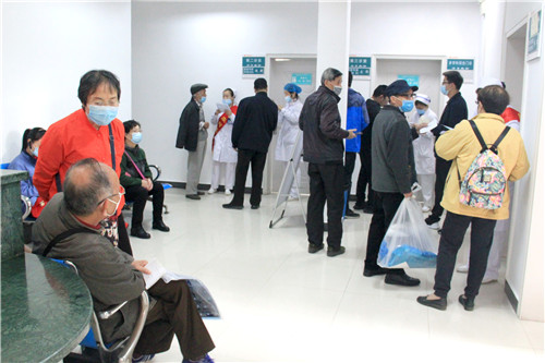 在安慶市石化醫(yī)院的專家門診診室里,來自南京鼓樓醫(yī)院的10位專家在此坐診,慕名而來的患者擠滿了候診室。