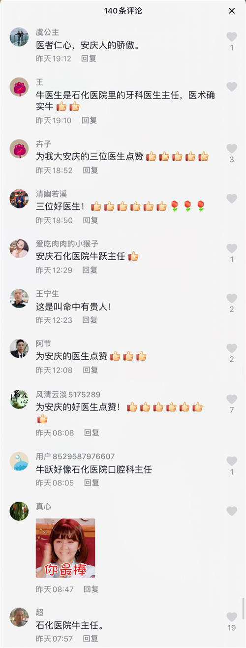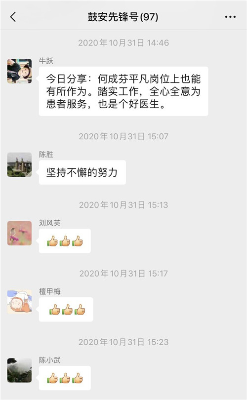 作為一名有著27年黨齡的老黨員,牛躍一直以“做個(gè)好醫(yī)生”為職業(yè)目標(biāo)。救人當(dāng)天,他曾在醫(yī)院黨員微信群“鼓安先鋒號(hào)”分享了村醫(yī)何成芬的故事,同為基層一線醫(yī)務(wù)人員,他和何成芬一樣全心全意為患者服務(wù),贏得了患者的信賴和口碑。抖音視頻評(píng)論區(qū)里,就有不少市民認(rèn)出了牛主任的身影。