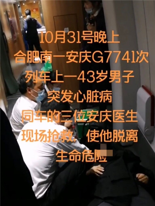 當(dāng)時(shí),因公出差的牛主任正在從亳州返回安慶的途中,列車途經(jīng)銅陵北時(shí),一則緊急求助廣播打破了車廂的寧?kù)o,“5號(hào)車廂有一位乘客身體突然不適,急需救治,列車上是否有醫(yī)護(hù)人員,請(qǐng)前往5號(hào)車廂提供救助?!鄙碓?/span>2號(hào)車廂的牛主任聽到廣播,第一時(shí)間趕到5號(hào)車廂。見患者面色蒼白、大汗淋漓、虛脫無力地坐在座位上,懷疑可能是心絞痛發(fā)作,便建議讓患者立即平躺,減少心臟負(fù)擔(dān)。在海軍安慶醫(yī)院醫(yī)生和乘務(wù)員的協(xié)助下,將患者緩慢轉(zhuǎn)移至走道通風(fēng)處平躺?!皠e擔(dān)心,我們是醫(yī)生!”經(jīng)過牛主任和2位海軍安慶醫(yī)院醫(yī)生的照料,患者躺下后不久,癥狀便有所緩解。