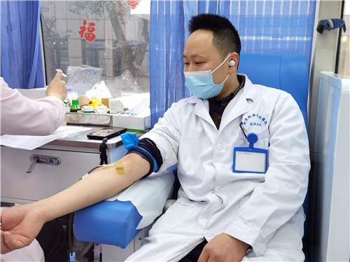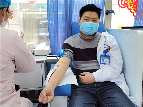 剛剛還穿梭于病房和換藥室的骨科副主任張明龍,一路小跑到獻(xiàn)血車(chē)旁。明明是寒冷的冬日,他的額頭上卻滿是細(xì)密的汗珠,“獻(xiàn)400ml!”他一邊擼起袖子一邊堅(jiān)定地說(shuō)。針管剛剛拔出,他又馬不停蹄地趕去手術(shù)室。