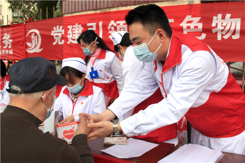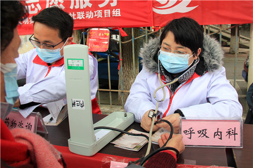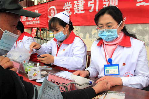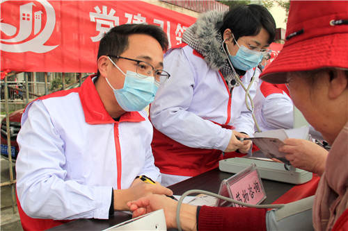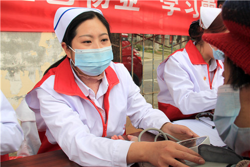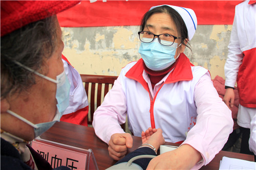 前來問詢看診的市民絡(luò)繹不絕,每一位志愿者秉持著“奉獻(xiàn)、友愛、互助、進(jìn)步”的志愿者精神,以飽滿的熱情引導(dǎo)、接待每一位市民,為他們監(jiān)測血壓血糖、面對(duì)面答疑解惑。