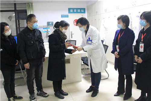 院長韋寧華向捐獻者家屬頒發(fā)捐獻證書