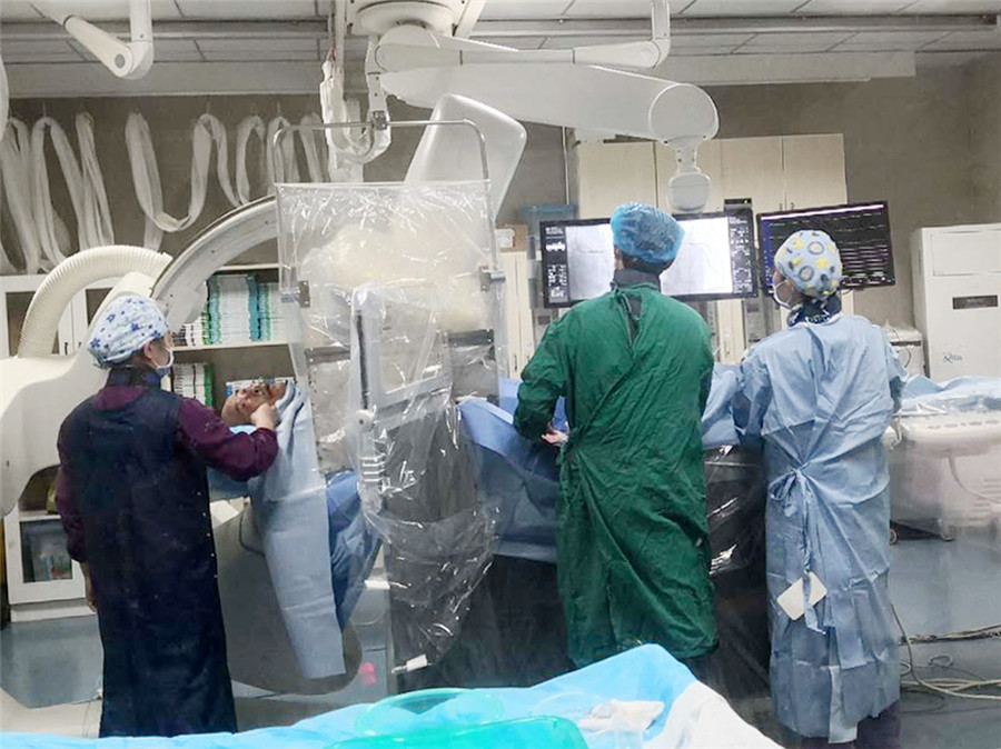 一籌莫展之際,何老的家人聽說,南京鼓樓醫(yī)院有很多專家定期在石化醫(yī)院坐診并開展手術(shù),便抱著試試看的心態(tài),帶著檢查資料找到石化醫(yī)院副院長、心血管內(nèi)科主任汪念東。汪院長仔細(xì)查看何老的冠脈造影資料并詢問病情,認(rèn)為病變復(fù)雜,手術(shù)的確有難度,第一時(shí)間就聯(lián)系了科室長期幫扶專家、南京鼓樓醫(yī)院心內(nèi)科宋杰教授。宋教授分析影像資料后,表示手術(shù)希望很大,可以安排在石化醫(yī)院行介入治療。得到肯定的答復(fù),何老和家人吃下定心丸,重燃治愈的希望。
