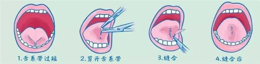 注意:一般來(lái)說(shuō),最好觀察到2歲以后,這時(shí)候舌尖開(kāi)始逐漸遠(yuǎn)離舌系帶,如果確因系帶過(guò)短影響舌前伸,甚至妨礙語(yǔ)言清晰,可以尋求進(jìn)一步治療。