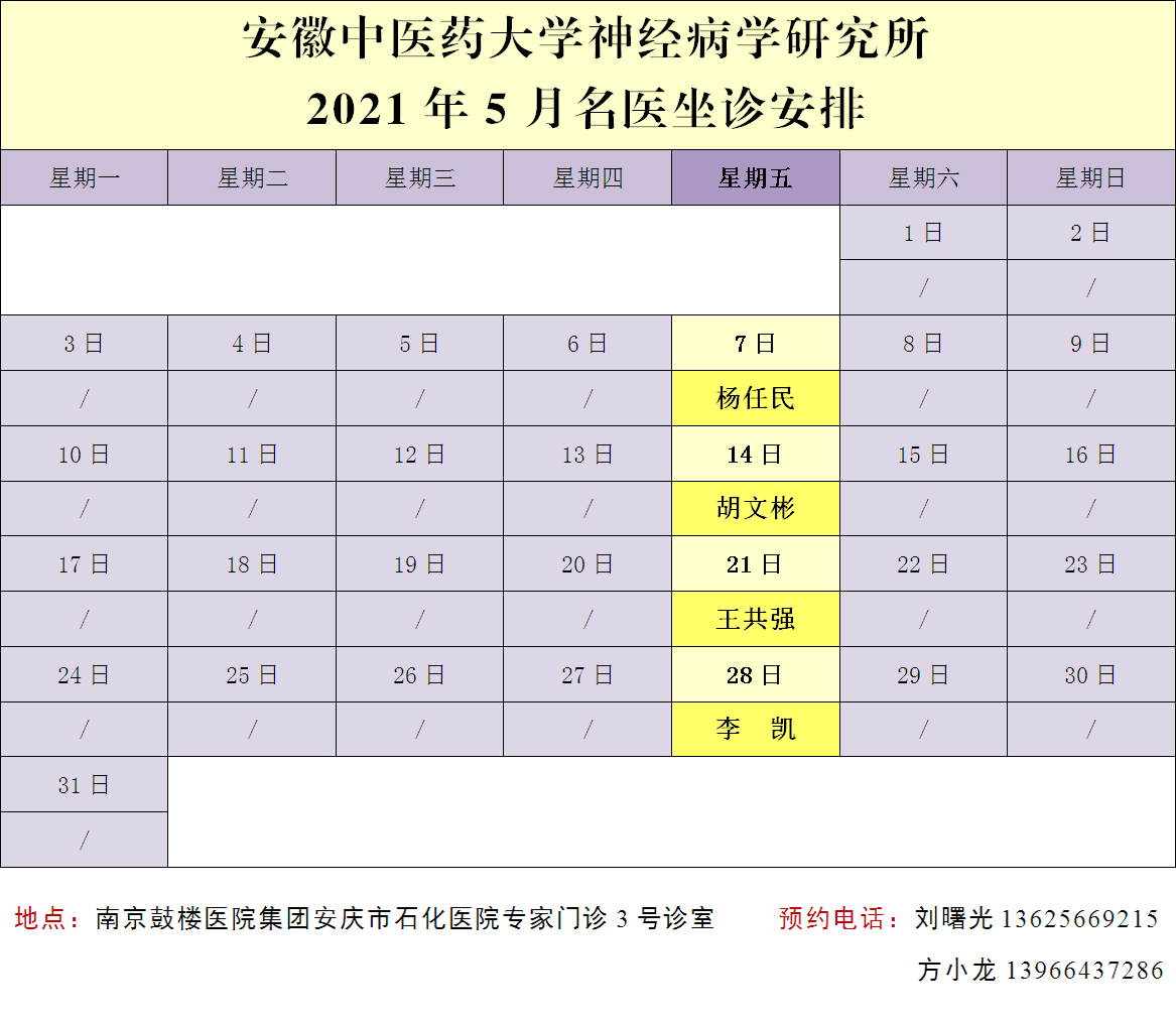 2021年5月,楊任民教授、胡文彬教授、王共強教授、李凱教授都將到石化醫(yī)院坐診,機會難得,不容錯過!