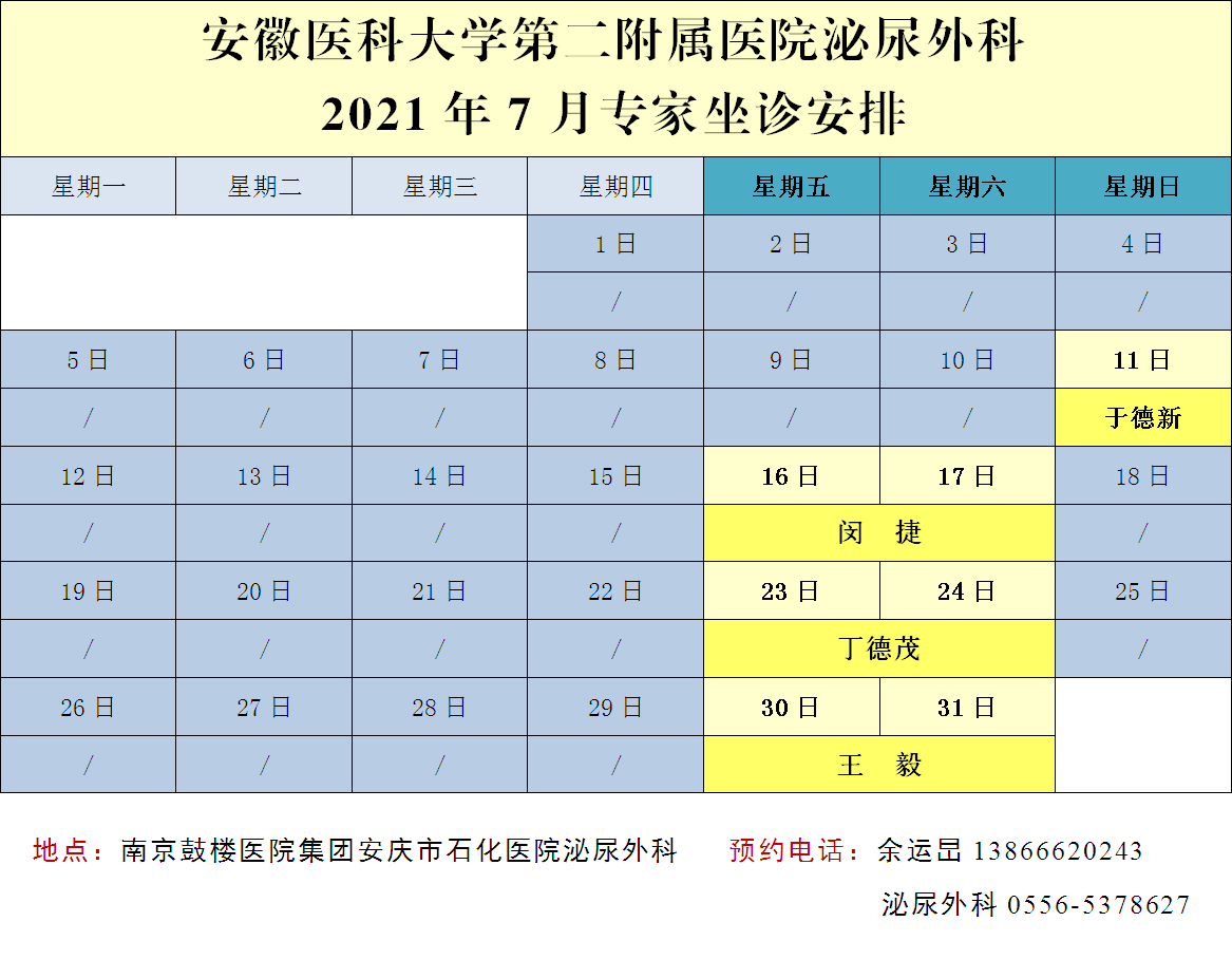 接下來,安醫(yī)二附院泌尿外科副主任醫(yī)師閔捷、副主任醫(yī)師丁德茂、主任醫(yī)師王毅都將到石化醫(yī)院坐診,機(jī)會(huì)難得,不容錯(cuò)過,趕緊撥打預(yù)約電話吧!