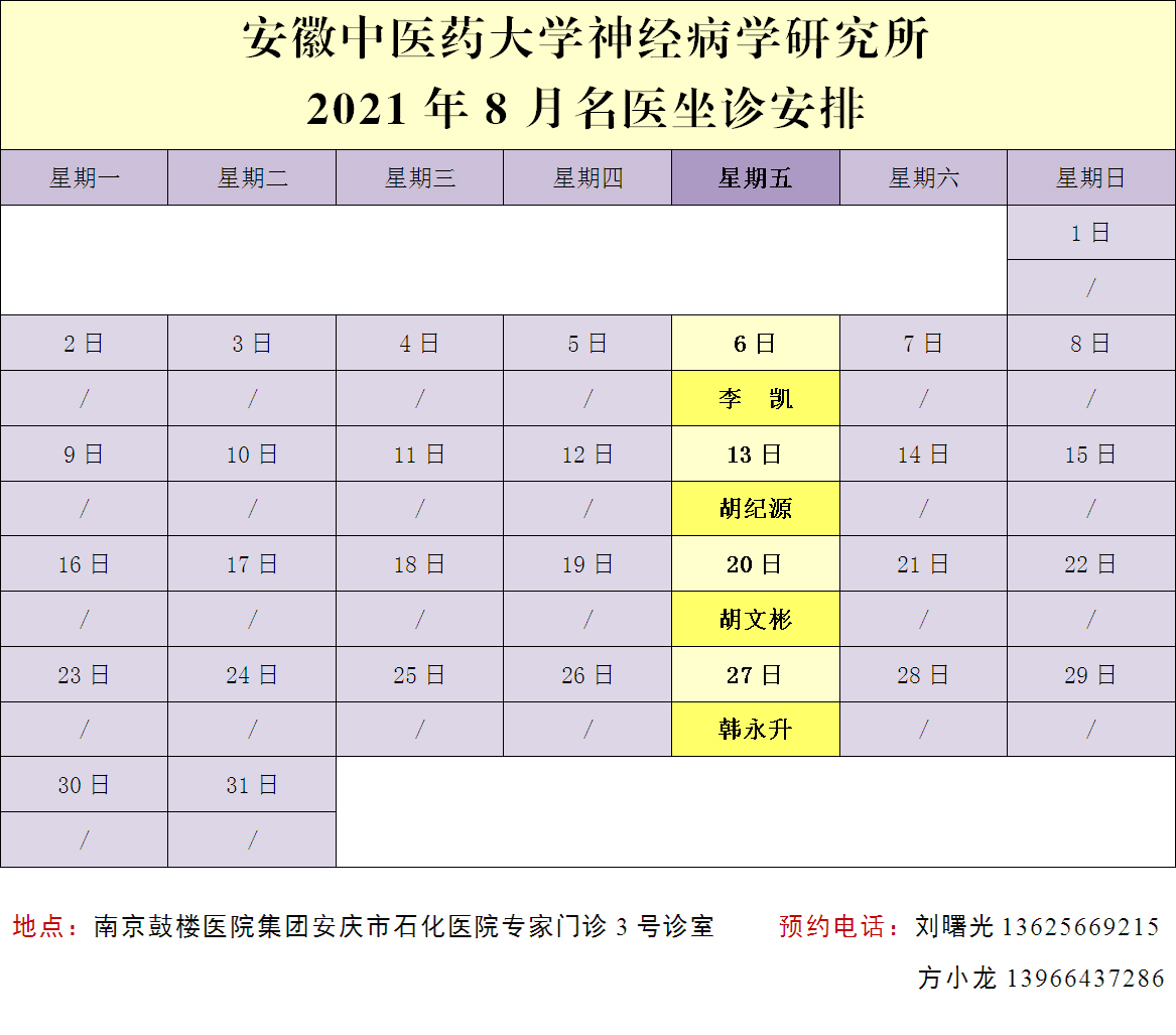2021年8月,李凱教授、胡紀(jì)源教授、胡文彬教授和韓永升教授都將到石化醫(yī)院坐診,機(jī)會難得,不容錯過!