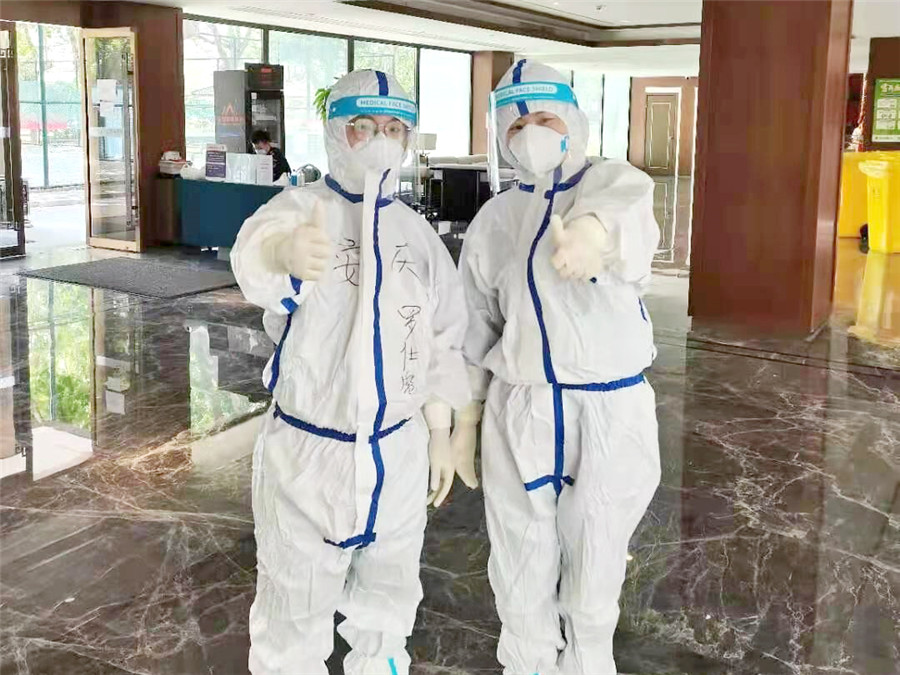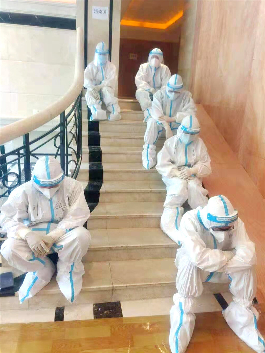 昨晚抵達南京后,石化醫(yī)院第一批12名隊員分成3組,馬不停蹄就投入了緊張的培訓。培訓一直持續(xù)到凌晨2點,隨后,3組人員分別進駐南京市鼓樓區(qū)的3家定點隔離酒店開始工作。凌晨4點,隊員們協(xié)助隔離人員辦理入住、登記信息。他們將和南京工作人員一起,負責這3個隔離點所有隔離人員的醫(yī)療保障和生活照料任務。