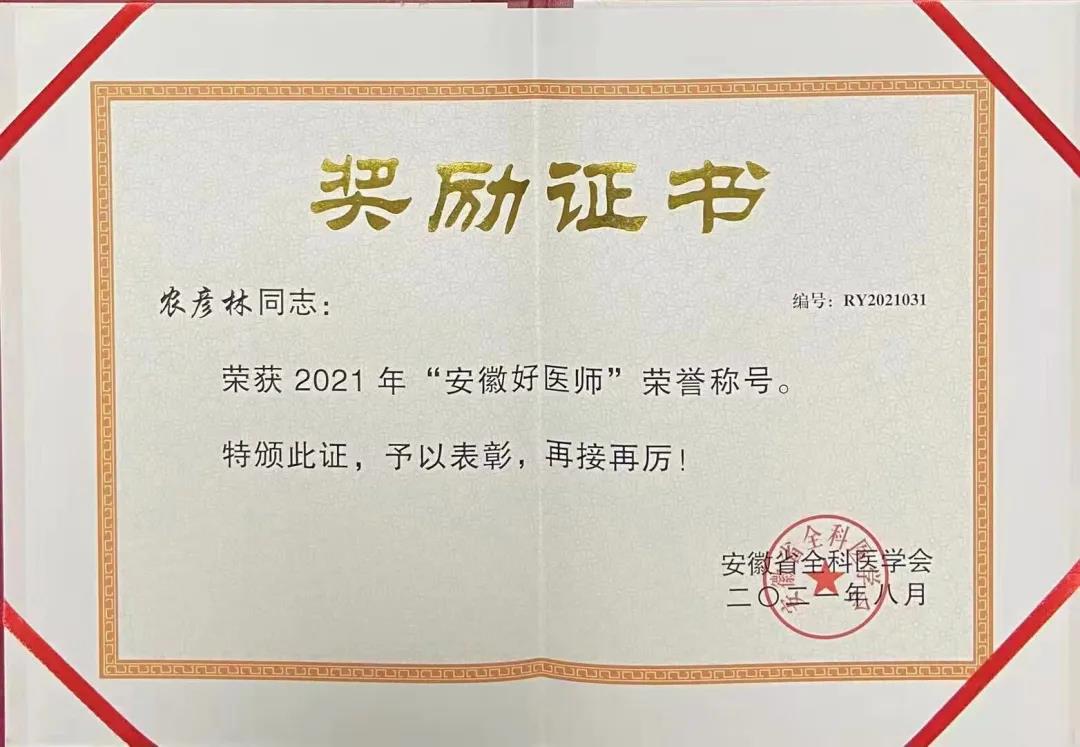 本次評選由各地全科醫(yī)學會分會、專業(yè)委員會研究確定推薦對象,再由安徽省醫(yī)學會辦公室和監(jiān)事會對推薦情況進行審核和評審,最后優(yōu)中選優(yōu),綜合評選出“2021年安徽好醫(yī)師、好藥師”。石化醫(yī)院心血管內科主任助理、副主任醫(yī)師農彥林榜上有名,榮獲“2021年安徽好醫(yī)師”榮譽稱號,現場接受頒獎。
