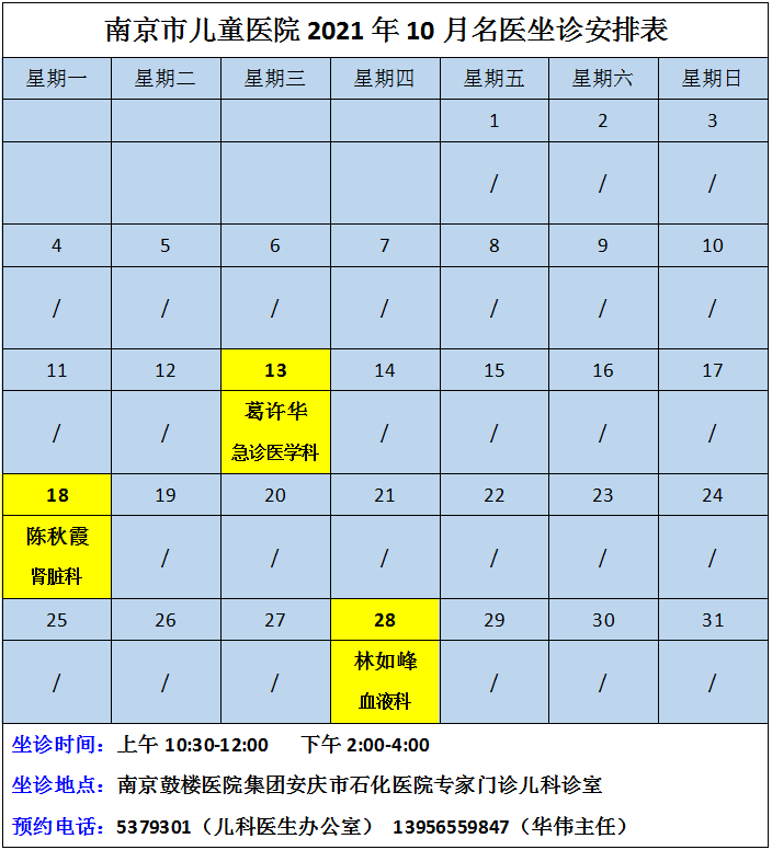2021年10月,南京市兒童醫(yī)院急診醫(yī)學(xué)科副主任醫(yī)師葛許華、腎臟科副主任醫(yī)師陳秋霞、血液科副主任醫(yī)師林如峰將來到石化醫(yī)院坐診!