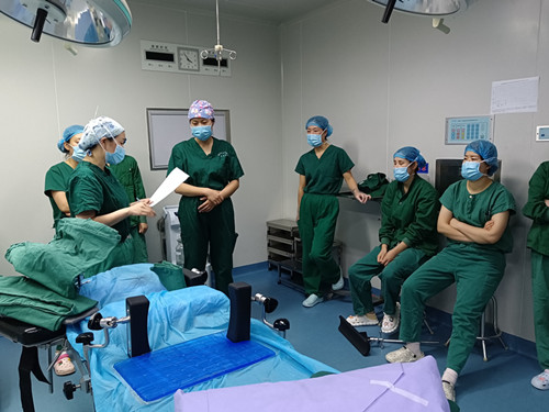 為切實(shí)落實(shí)人文關(guān)懷,深化“以病人為中心”的個(gè)性化關(guān)懷護(hù)理服務(wù)內(nèi)涵,麻醉科護(hù)理團(tuán)隊(duì)結(jié)合??铺厣肮ぷ魈攸c(diǎn),開(kāi)展了首屆精細(xì)化手術(shù)體位安置技能培訓(xùn)。全面實(shí)施精細(xì)化手術(shù)體位管理,提高了護(hù)士正確合理安置手術(shù)體位的能力,實(shí)現(xiàn)手術(shù)體位標(biāo)準(zhǔn)化、精細(xì)化,方便醫(yī)生手術(shù)操作的同時(shí),保證了患者安全,提升了患者的舒適度,為手術(shù)的順利完成和患者的良好愈后提供重要保障。