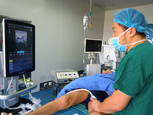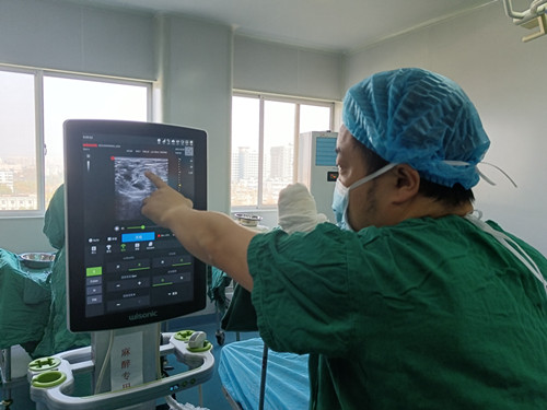 不止護(hù)理團(tuán)隊(duì),麻醉科醫(yī)生團(tuán)隊(duì)也致力于為患者提供優(yōu)質(zhì)服務(wù)。副主任阮宏智開(kāi)展了超聲引導(dǎo)下的神經(jīng)阻滯麻醉,操作全程可視化,定位精準(zhǔn),能顯著提高神經(jīng)阻滯安全性,尤其適用于高齡以及合并多系統(tǒng)疾病的患者的四肢手術(shù)麻醉、鎮(zhèn)痛,胸腹部手術(shù)的術(shù)后鎮(zhèn)痛等,減輕疼痛,利于術(shù)后恢復(fù),也契合日間手術(shù)快速康復(fù)的理念。