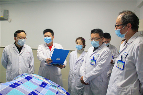 鄭東風(fēng)主任與蔣亞楠醫(yī)生帶領(lǐng)石化醫(yī)院燒傷整形科團隊開展查房、教學(xué)工作,了解患者病情,給出指導(dǎo)意見。
