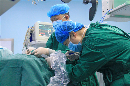 查房之后,錢曉云主任與石化醫(yī)院耳鼻咽喉頭頸外科楊中目副主任醫(yī)師一起為一位聲帶息肉患者實(shí)施了喉顯微手術(shù)。該患者伴有小頜,屬困難氣道,上頜多個(gè)烤瓷牙,術(shù)前楊中目醫(yī)生已為患者制作了牙墊。經(jīng)過充分的術(shù)前準(zhǔn)備,既順利完成手術(shù),又完好地保存了假牙,患者術(shù)后第一天即康復(fù)出院。