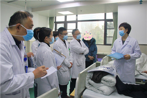 交班之后,在石化醫(yī)院黨委副書記、副院長、耳鼻咽喉頭頸外科學(xué)科帶頭人汪文曉及主任趙小康等人的陪同下,錢曉云主任攜朱光潔博士進(jìn)行教學(xué)查房,探討疑難病例。