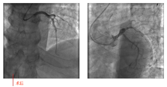 心血管內(nèi)科副主任徐先進(jìn)在主任助理農(nóng)彥林和主任汪念東的配合下行冠狀動(dòng)脈造影,結(jié)果如術(shù)前判斷一致,左主干重度狹窄,患者命懸一線。對團(tuán)隊(duì)緊急處置非常信任的李阿姨,毫無疑慮地聽取了術(shù)者的建議,同意在血管內(nèi)超聲(IVUS)的精準(zhǔn)指導(dǎo)下,在患者左主干內(nèi)植入一枚支架,成功拯救了患者的生命。