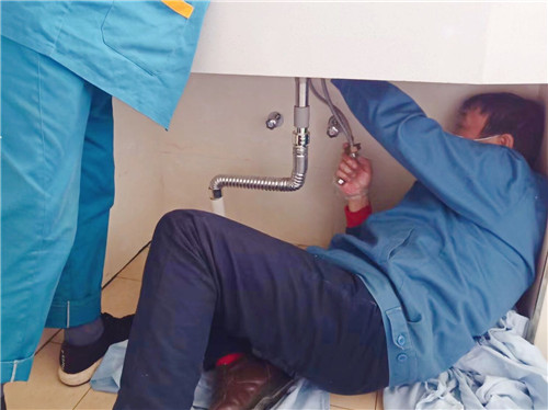 病房衛(wèi)生間漏水,行政綜合科徐大毛第一時間趕到,快速更換破裂的水管。窩在角落的身影,成為了一道美麗的風景線,為他點贊!