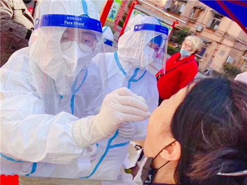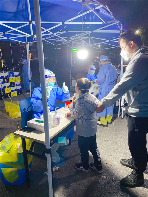 作為三個孩子的媽媽,麻醉科護士程鳳仙舍小家為大家,第一時間報名支援上海戰(zhàn)疫?!靶∨笥眩阏嬗赂?!”她一面鼓勵剛做完核酸的小朋友,一面豎起大拇指點贊。