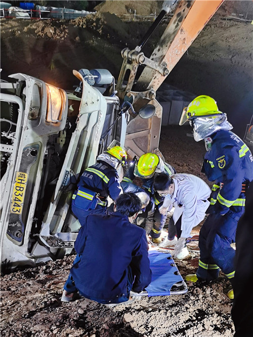渣土車司機因車輛側(cè)翻、腿部擠壓被困駕駛室,急診科醫(yī)生劉少毅第一時間趕到現(xiàn)場,在塌方土坡上成功轉(zhuǎn)運被困受傷司機。