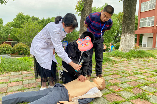 除了理論講解,胡護(hù)士長還為大家演示了溺水后搶救生命的重要手段——心肺復(fù)蘇術(shù)。同學(xué)們也積極參與其中,踴躍親身操作,掌握關(guān)鍵步驟。