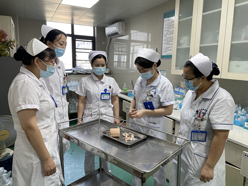 金莉深知,護(hù)理燒傷患者技術(shù)要求高、護(hù)理難度大、工作環(huán)境差,她只有不斷學(xué)習(xí)護(hù)理知識,提升護(hù)理技能,才能更好地服務(wù)患者。一位媽媽想用充電熱水袋給奶瓶保溫,沒想到在充電加熱過程中,熱水袋炸開,造成8個月大的孩子全身55%深二度燙傷,送醫(yī)時已口唇青紫,四肢厥冷,休克病癥明顯。燒傷患者尤其是大面積燒傷,早期因特別的生理機(jī)制,血管干癟,加上患兒年紀(jì)小,血管本來就細(xì),很難看到且難以觸及,這對靜脈置管來說是一個極大的挑戰(zhàn)?;純杭毙桁o脈補(bǔ)液,在這緊急的情況下,金莉站了出來,沉著冷靜,不負(fù)眾望,一次穿刺成功。這一刻,她更加深刻地明白,磨煉技術(shù)、精益求精,為的就是能幫助患者減少痛苦,早日恢復(fù)健康。