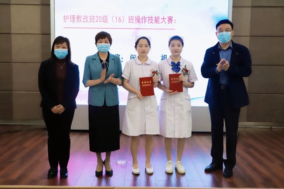 在第111個(gè)國(guó)際護(hù)士節(jié)前夕,教改班還舉辦了心肺復(fù)蘇急救技能操作大賽。同學(xué)們認(rèn)真準(zhǔn)備、勤于練習(xí),經(jīng)過理論初賽和操作復(fù)賽的選拔,共有10名選手脫穎而出,分別榮獲一、二、三等獎(jiǎng),并在醫(yī)院護(hù)士節(jié)慶祝暨表彰大會(huì)上,接受了安慶醫(yī)藥高等??茖W(xué)校領(lǐng)導(dǎo)的頒獎(jiǎng)祝賀。