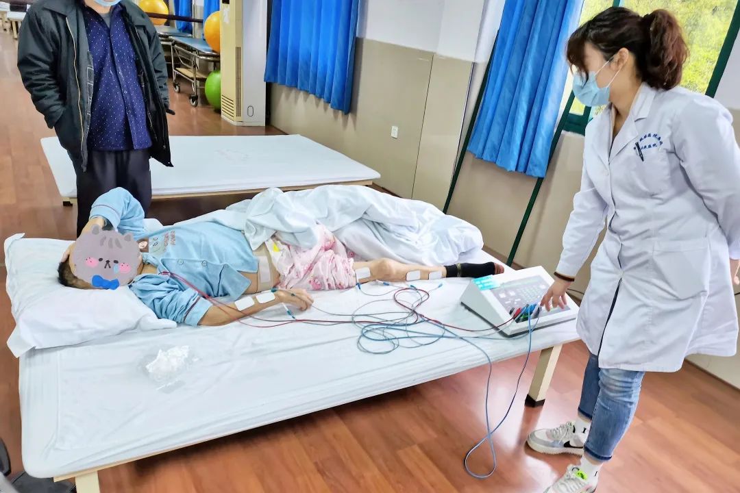 面對(duì)丁女士一家人的殷切期盼,康復(fù)醫(yī)學(xué)科負(fù)責(zé)人王義斌、護(hù)士長(zhǎng)陳志梅以及治療師團(tuán)隊(duì)高度重視,全面評(píng)估患者病情,制定康復(fù)治療方案,采取針灸、中風(fēng)后遺癥推拿、肌力訓(xùn)練、站立訓(xùn)練增強(qiáng)肌力,結(jié)合中頻、偏癱肢體訓(xùn)練等現(xiàn)代康復(fù)方法,保障其得到良好休息。