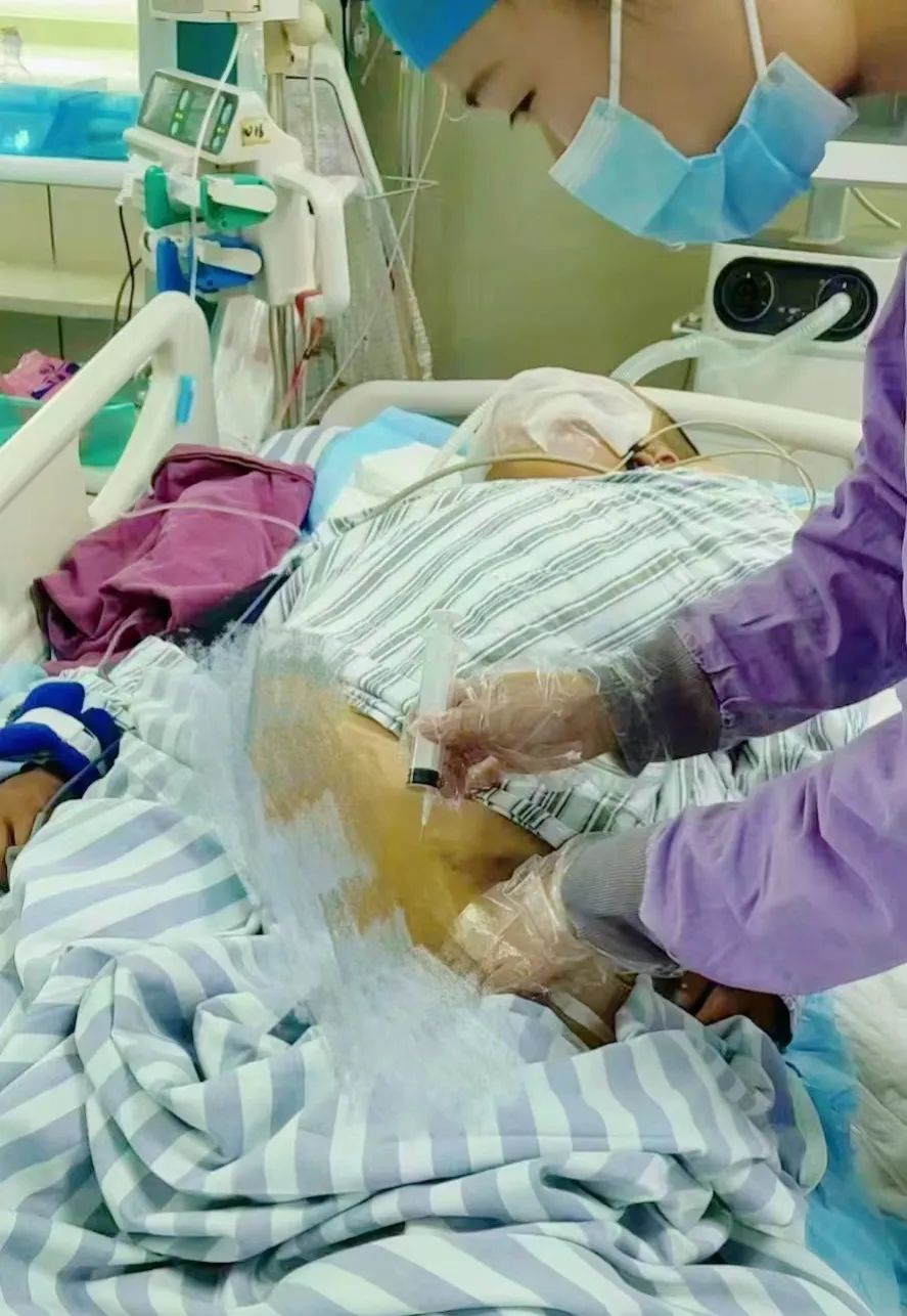 盧女士的情況不容樂觀,被送至ICU時,GCS評分(格拉斯哥昏迷評分法)僅3分(重度昏迷),呼吸費力,多臟器功能衰竭,全身皮下黏膜多處出血。石化醫(yī)院ICU團隊緊急予以開放中心靜脈,立即擴容、補液,同時予以物理降溫、胃管注入冰鹽水降低核心溫度、“冬眠合劑”降溫等措施。