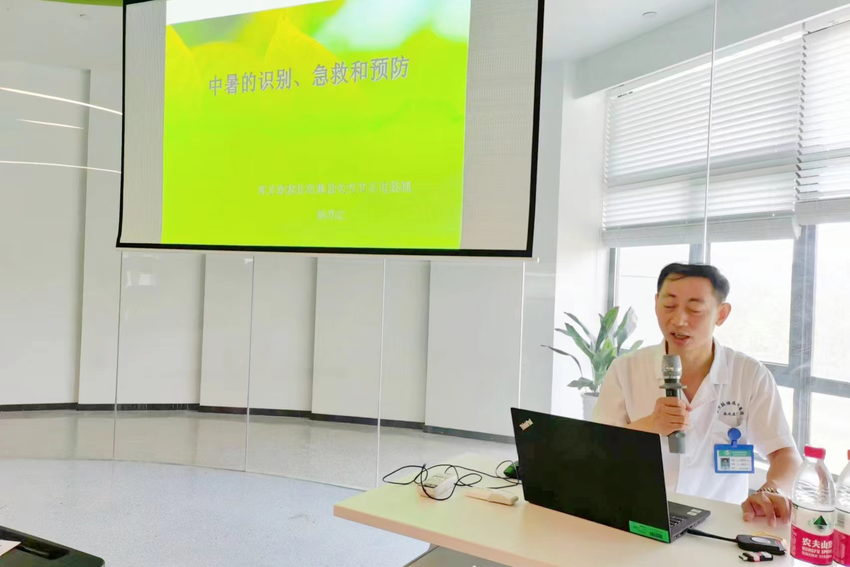 陳丙紅主任現(xiàn)場講解了中暑的產(chǎn)生原因、預(yù)防措施以及急診救治相關(guān)知識,通過介紹防暑降溫誤區(qū)及急救錯(cuò)誤做法,為藥企的戶外工作者提供了實(shí)用、豐富的建議。