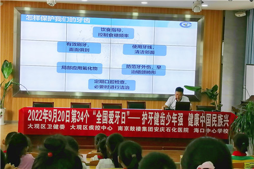 今年9月20日是第34個(gè)“全國愛牙日”,當(dāng)天,石化醫(yī)院聯(lián)合安慶市大觀區(qū)衛(wèi)健委、大觀區(qū)疾控中心在海口中心學(xué)校舉辦了一場別開生面的口腔健康講座。