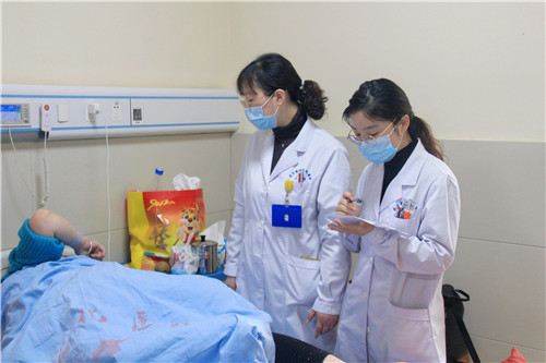 為表達(dá)謝意,患者家屬來到醫(yī)生辦公室,親自為查正霞主任和周玉敏醫(yī)生送上錦旗。