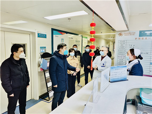 1月26日大年初五上午,大觀區(qū)區(qū)長(zhǎng)金玉、副區(qū)長(zhǎng)黃瑾、衛(wèi)健委主任陳麗華等一行來(lái)到石化醫(yī)院,走訪慰問(wèn)春節(jié)期間仍堅(jiān)守崗位、奮戰(zhàn)一線的醫(yī)務(wù)人員。