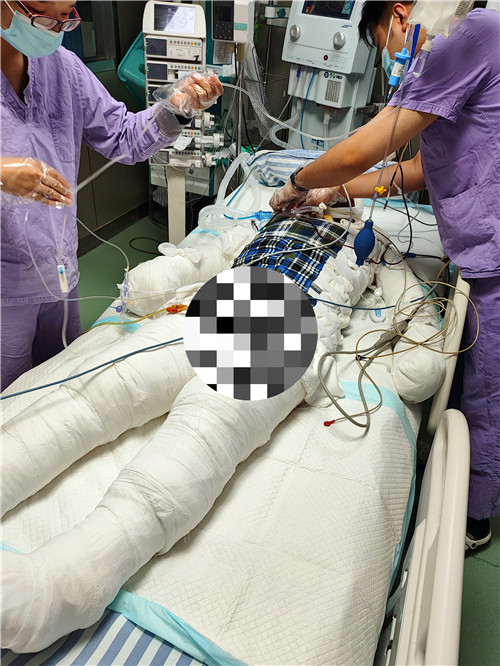 “可以救,趕緊送過來吧!”放下電話,石化醫(yī)院急診科和燒傷整形一病區(qū)立刻開始準(zhǔn)備。一位工人因車間起火,火焰燒傷全身多處2小時致體表80%-90%燒傷。
