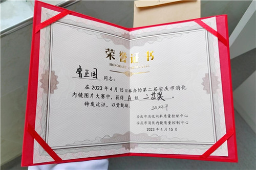 近日,在第二屆安慶市消化內(nèi)鏡圖片大賽上,石化醫(yī)院消化內(nèi)科曹正國副主任醫(yī)師表現(xiàn)優(yōu)異,榮獲A組二等獎(jiǎng)。