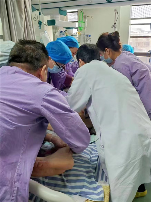 “俯臥位通氣”雖好,但對(duì)于重癥醫(yī)學(xué)科的患者來說,病情較復(fù)雜,全身導(dǎo)管多,翻身難度大。石化醫(yī)院重癥醫(yī)學(xué)科為確?;颊叻頃r(shí)的管路安全,不斷優(yōu)化流程,改良翻身技巧,緊密醫(yī)護(hù)合作,力求為患者提供更優(yōu)質(zhì)的醫(yī)療服務(wù),促進(jìn)患者更快速康復(fù)。