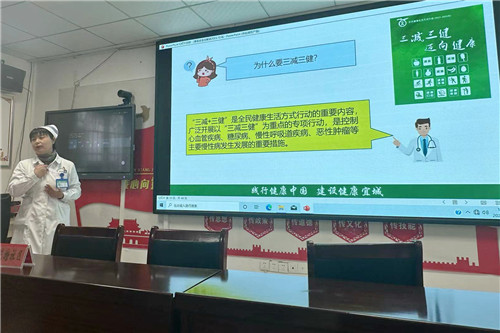 護(hù)理部主任劉風(fēng)英以圖文并茂的方式,引導(dǎo)大家做自己健康的第一責(zé)任人,樹(shù)立三減三健理念,即減鹽、減糖、減油、健康口腔、健康體重、健康骨骼,養(yǎng)成良好的生活習(xí)慣。